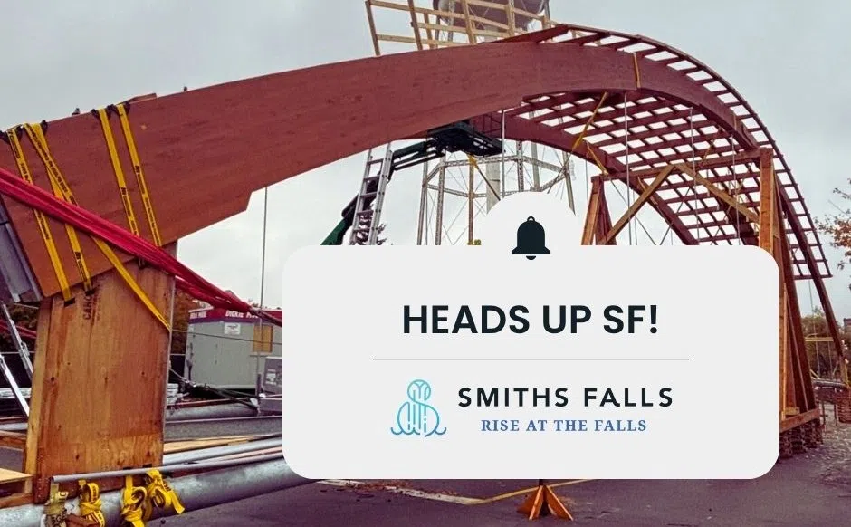 A major milestone takes place today in Smiths Falls as StructureCraft prepares to lift the town’s new Timber Bridge into place on Tuesday, October 21.