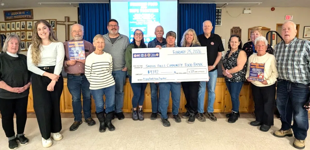 The Rotary Club of Smiths Falls, Kinsmen Club of Smiths Falls, along with the Legion, Lions and Civitan Clubs, teamed up for the largest combined service club food drive effort in the town’s history.
